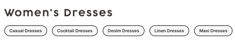 At the same time, for the page "Women's Dresses" in a browse experience, returned categories might include Casual Dresses, Cocktail Dresses, Denim Dresses, and more.