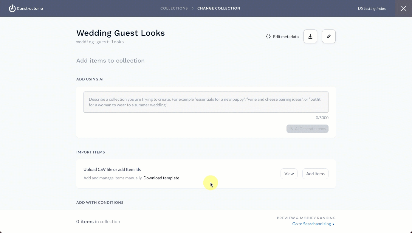 - Select Go to Searchandising in the bottom-right corner of the Add items to collection page.