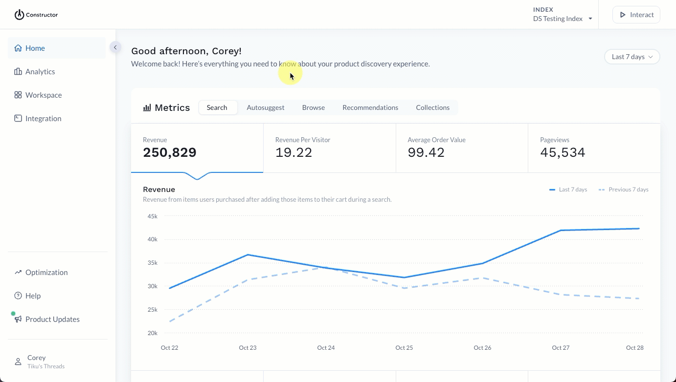 - Select Workspace in the side menu of the Constructor dashboard, then select Collections.