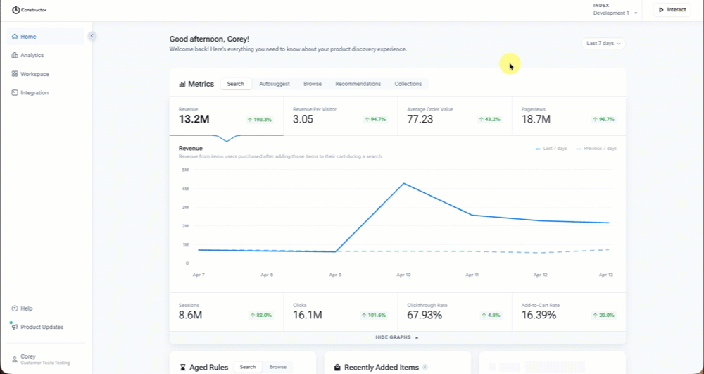 - Select Interact in the top-right corner of the Constructor dashboard.