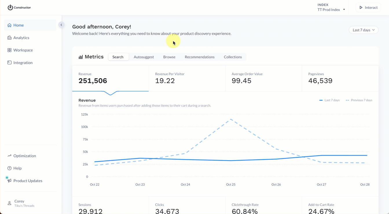 - Select Workspace in the side menu of the Constructor dashboard, then select Searchandising.